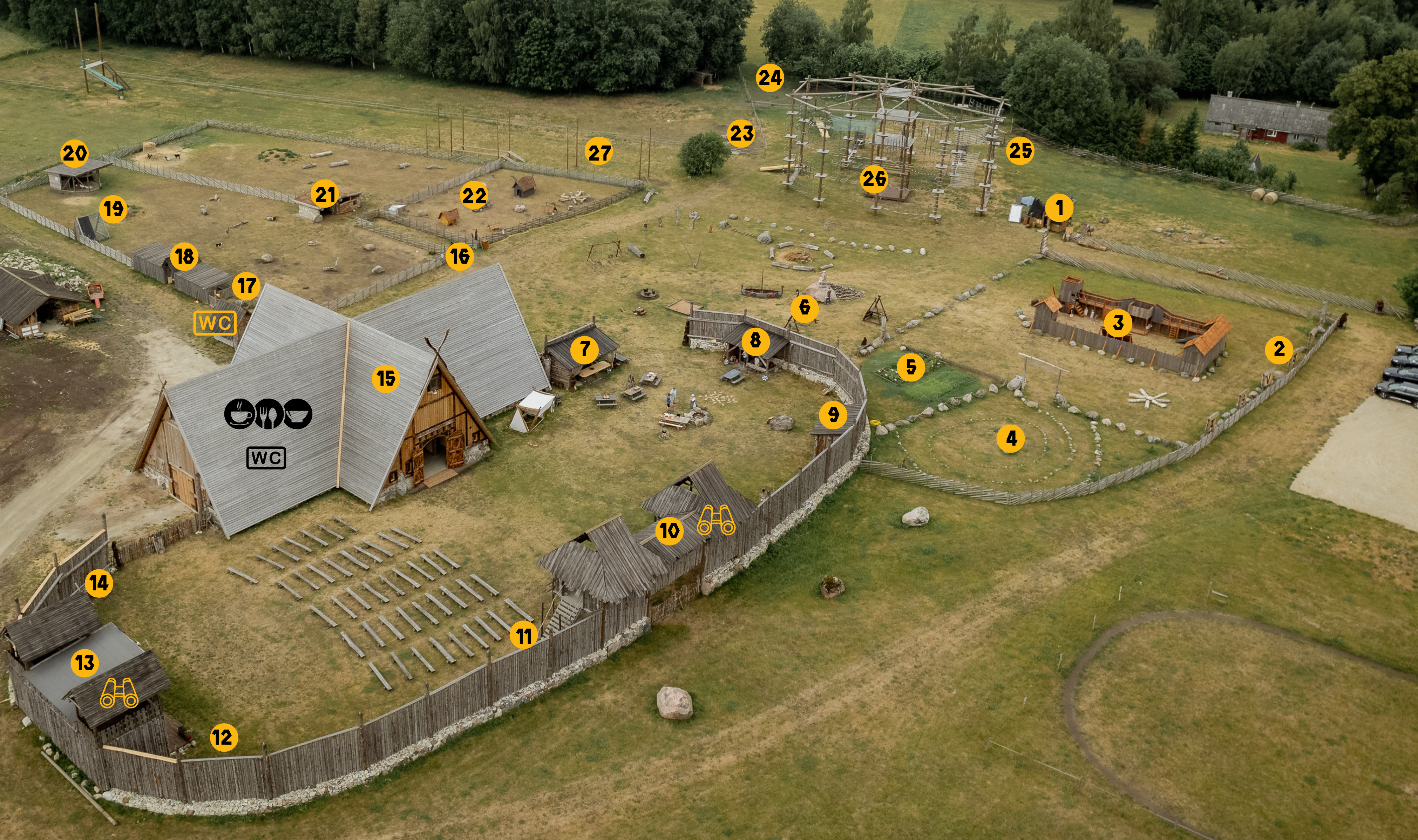 Saaremaa viikingid on end sisse seadnud põlisesse viikingite kantsi Asva muinaslinnuse veerel, kus on maid haritud ja sõdu peetud juba pronksiajast saati. Siin kohtuvad eri ajastud läbi kolme aastatuhande. Temaatilised tegevused on põimitud tänapäevaste atraktsioonidega ja rohkelt toimetamist jagub igas vanuses külastajale!