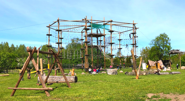 Посреди красивой деревни викингов находится высотный парк приключений, где ждут покорения более 50 троп четырех уровней сложности и впечатляющий воздушный полет длиной более 100 метров.